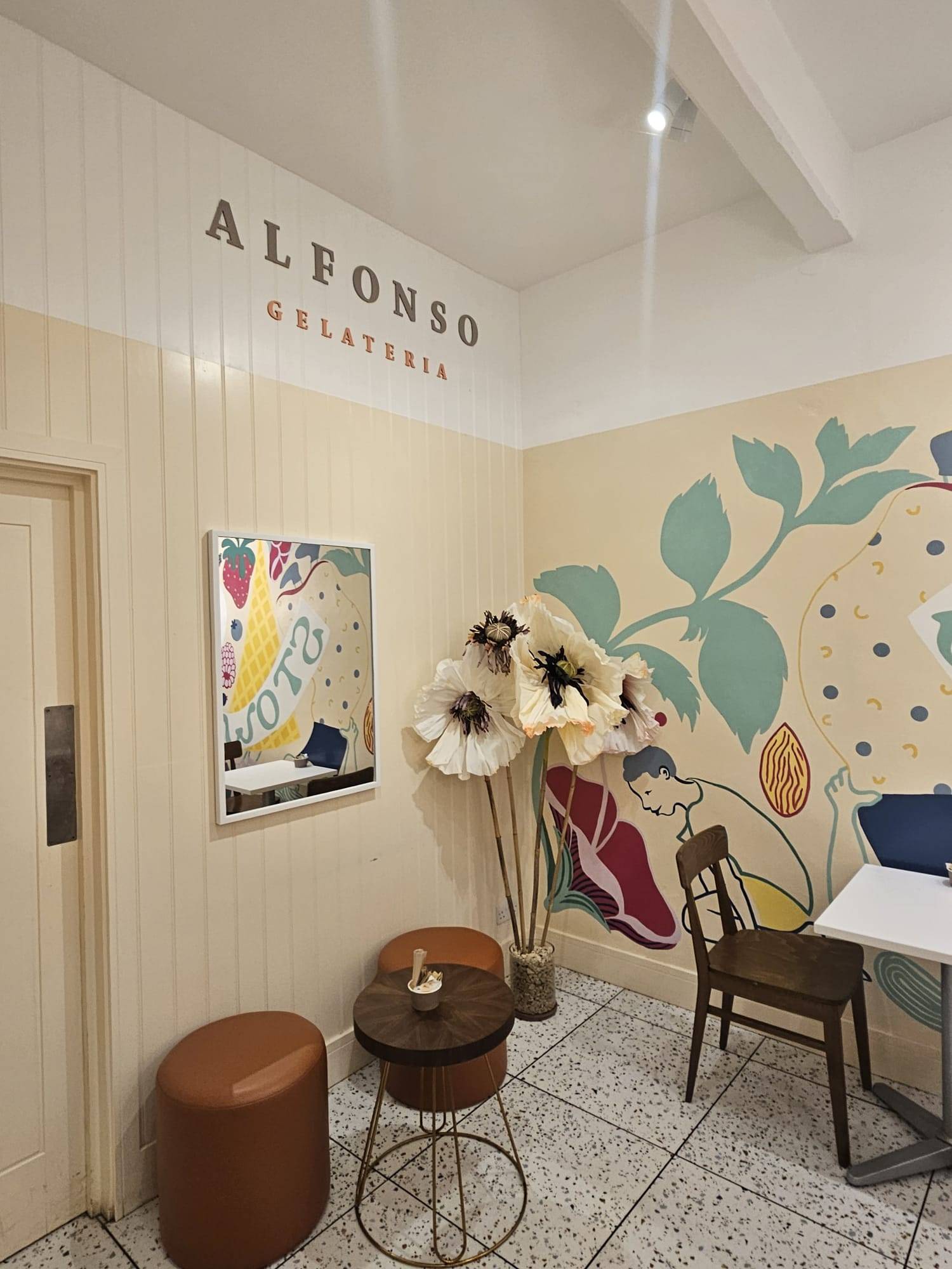 Otherwise, you can always sit inside and admire our hand painted mural.